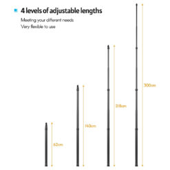 - Adjustable Length – Four adjustable lengths from 24.4 inches (62 cm) to 98.8 ft (3 m).