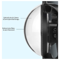 The SHOOT Dome Port is a newly designed accessory for capturing stunning photos and videos by the sea or pool. Compatible with GoPro HERO 11/10/9 Black, it offers high visibility with a transparent dome lens, allowing you to capture vivid 50/50 images above and below the water simultaneously.