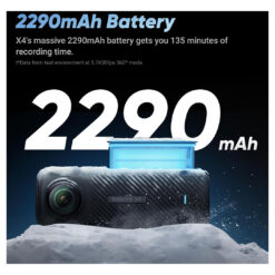- Improved Battery Life – The 2290mAh rechargeable battery offers up to 135 minutes of run time, 67% longer than the Insta360 X3, with fast charging capabilities.