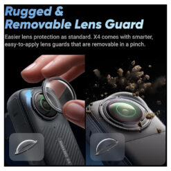 - Rugged Design with Removable Lens Guards – The X4 is built to withstand bumps and hardcore action, featuring upgraded lens guards that are easy to apply and remove.