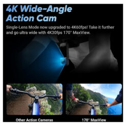 - 4K Ultra-Wide POV – Use the X4 as a wide-angle action camera with 4K60fps or get super-wide views with the 170° MaxView at 4K30fps.