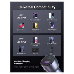 The UGREEN USB C Car Charger is designed to provide rapid and efficient charging for multiple devices simultaneously. Featuring a USB-C port with Power Delivery (PD 30W) and a USB-A port with Quick Charge (QC 18W), this charger can fast charge an iPhone 15 from 0 to 60% in just 30 minutes. Its compact, sleek design ensures a secure fit in your car’s power socket while offering universal compatibility with a wide range of smartphones, tablets, and gaming devices.
