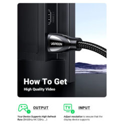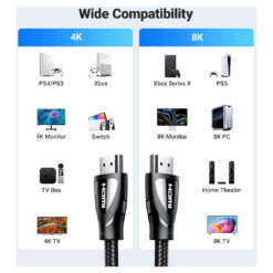Experience next-generation video and audio performance with the UGREEN 8K HDMI Cable 1.5M in Amman and across Jordan. Designed for premium entertainment setups, this cable supports 8K@60Hz and 4K@240Hz resolutions, high bandwidth of 48Gbps, and features such as eARC, HDR10, and HDCP 2.3 compatibility. Its braided build adds strength and longevity, making it ideal for PS5, Xbox Series X, Roku TVs, Blu-ray players, and more.