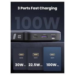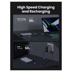 - 100W Fast Charging – Fully charge a MacBook Pro 16″ up to 42% or an iPhone 15 up to 60% in just 30 minutes.