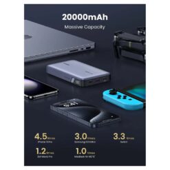 - Massive 20000mAh Capacity – Offers 5–7 days of battery life, charging an iPhone 15 Pro up to 4.5 times or a MacBook Air 15” once.