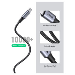 This UGREEN cable combines a premium build with fast charging and efficient data transfer capabilities. Featuring a 2-meter length, braided exterior, and nickel-plated aluminum connectors, it’s designed for durability and reliable performance. Whether you’re at home, at work, or on the go in Amman or anywhere in Jordan, this cable is the perfect companion for charging and syncing your USB-C devices
